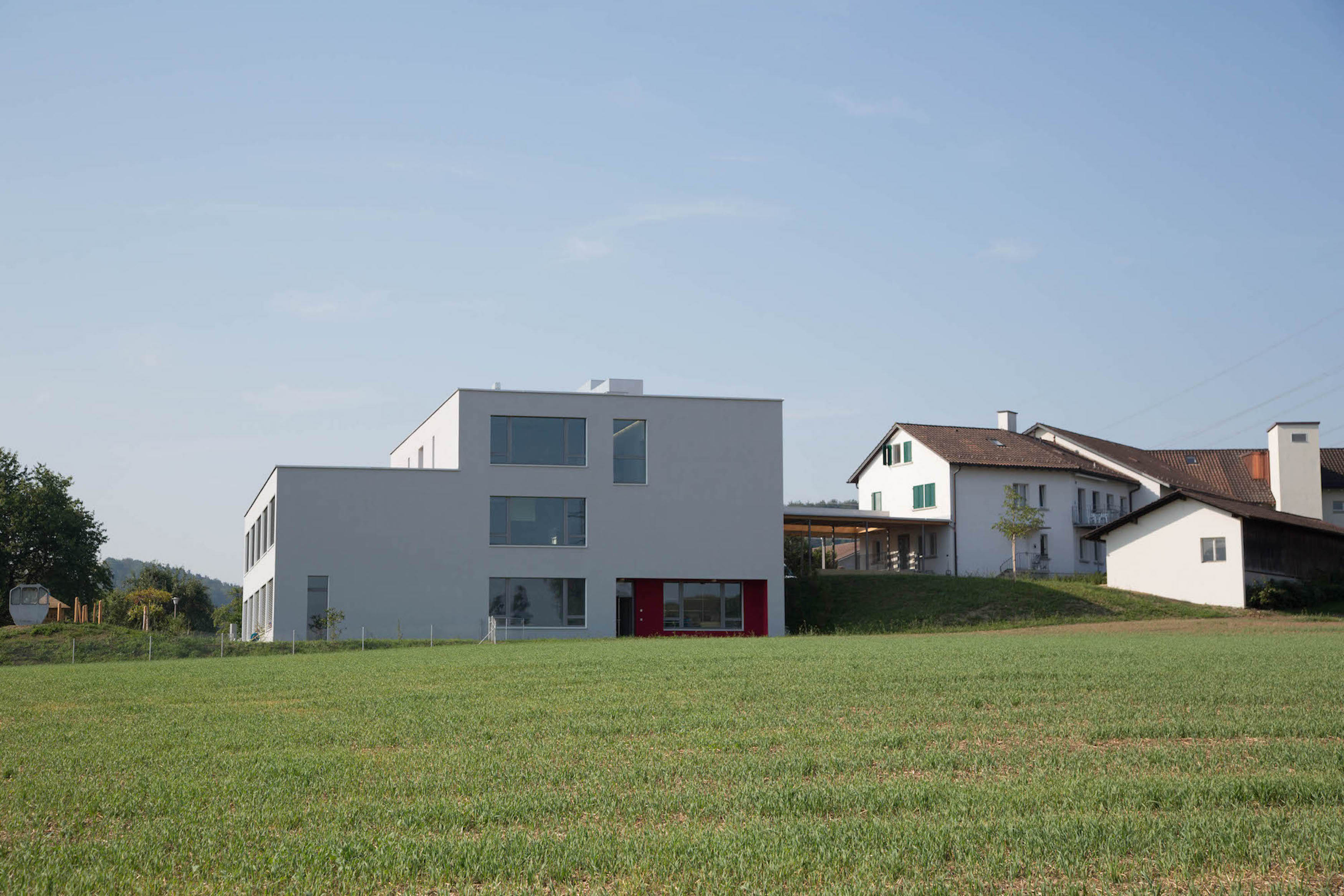 Schulhaus Nassenmatt, Aesch bei Birmensdorf Erweiterungsbau Primarschulhaus, Doppelkindergarten, Mittagstisch, Bibliothek, Wohnung Auftragsart: Gesamtleistungswettbewerb 1. Rang Projekt/Ausführung: 2012 - 2015