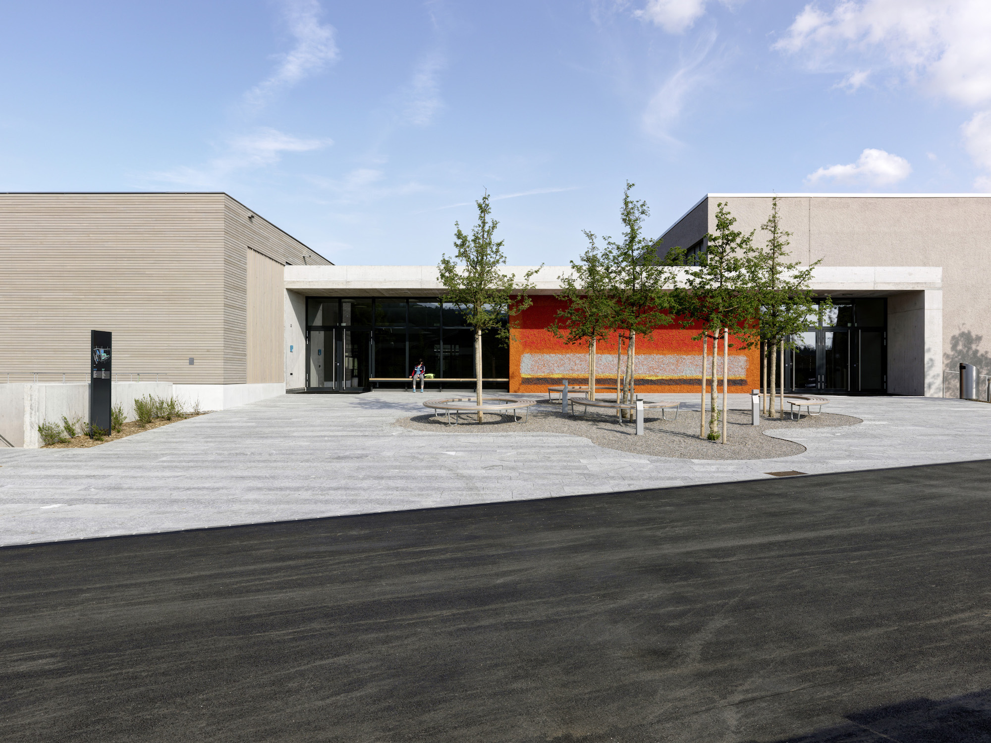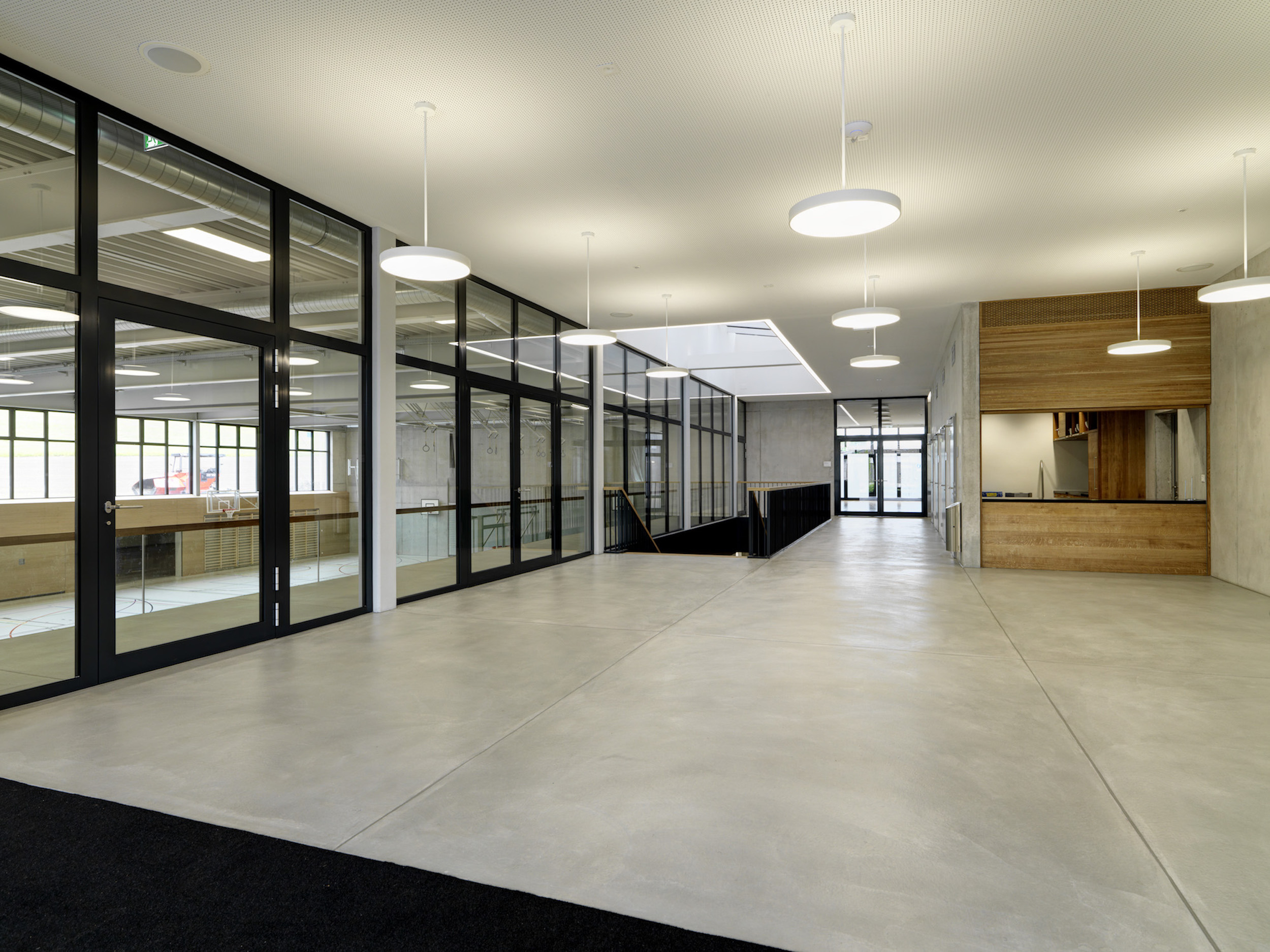 Doppelsporthalle Ellenberg, Otelfingen Wettbewerb 1. Rang: Doppelsporthalle und Mehrzweckraum Auftragsart: Wettbewerb 1. Rang Projekt/Ausführung: 2014 – 2017 Bilder: Pierre Kellenberger