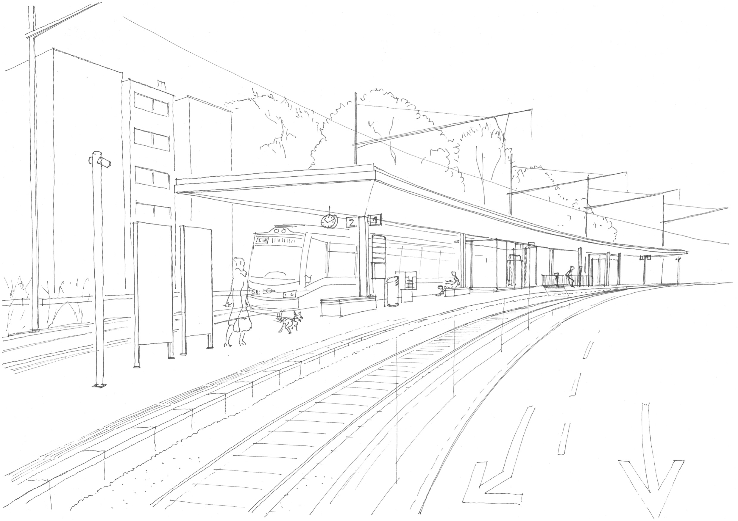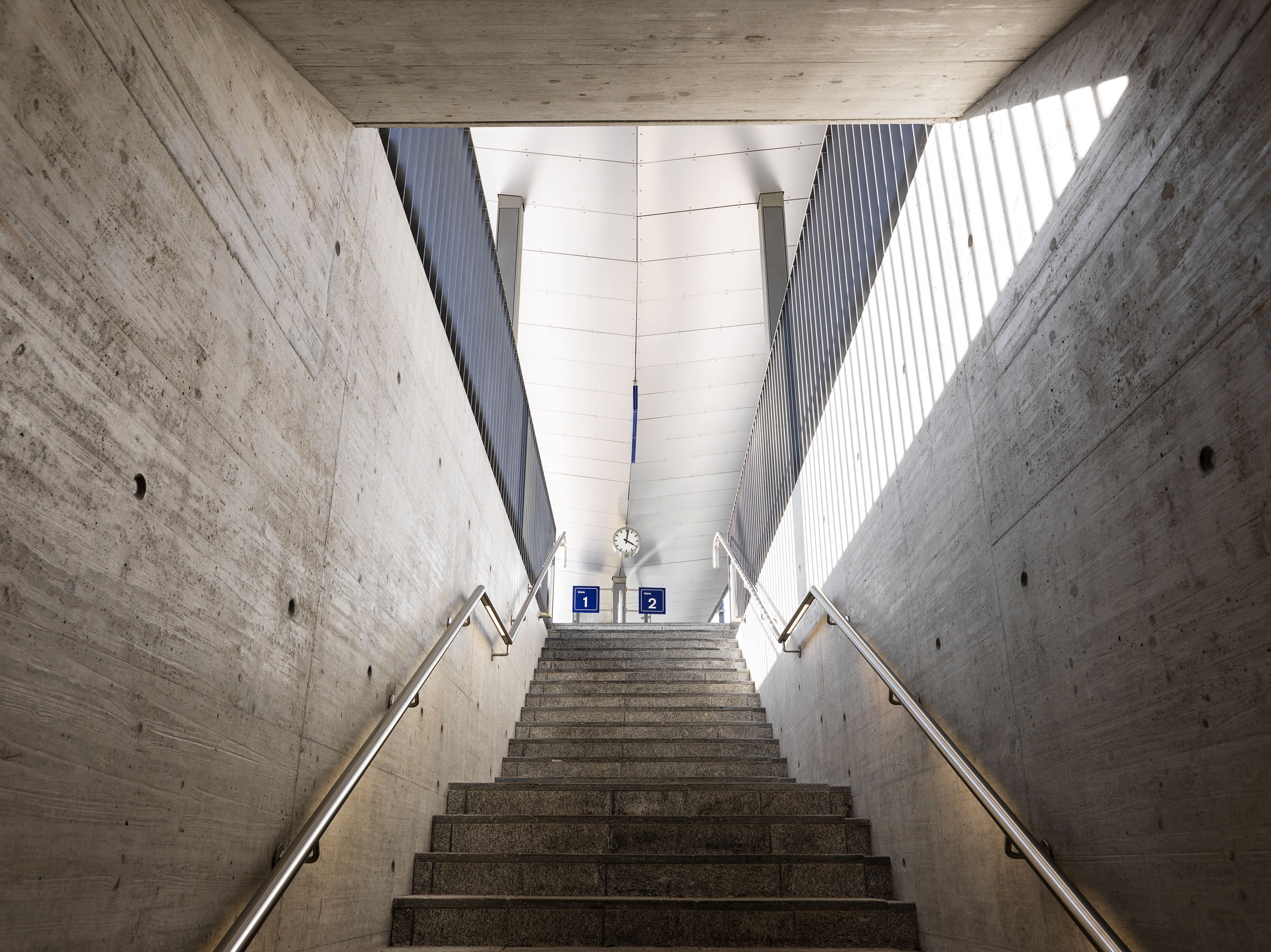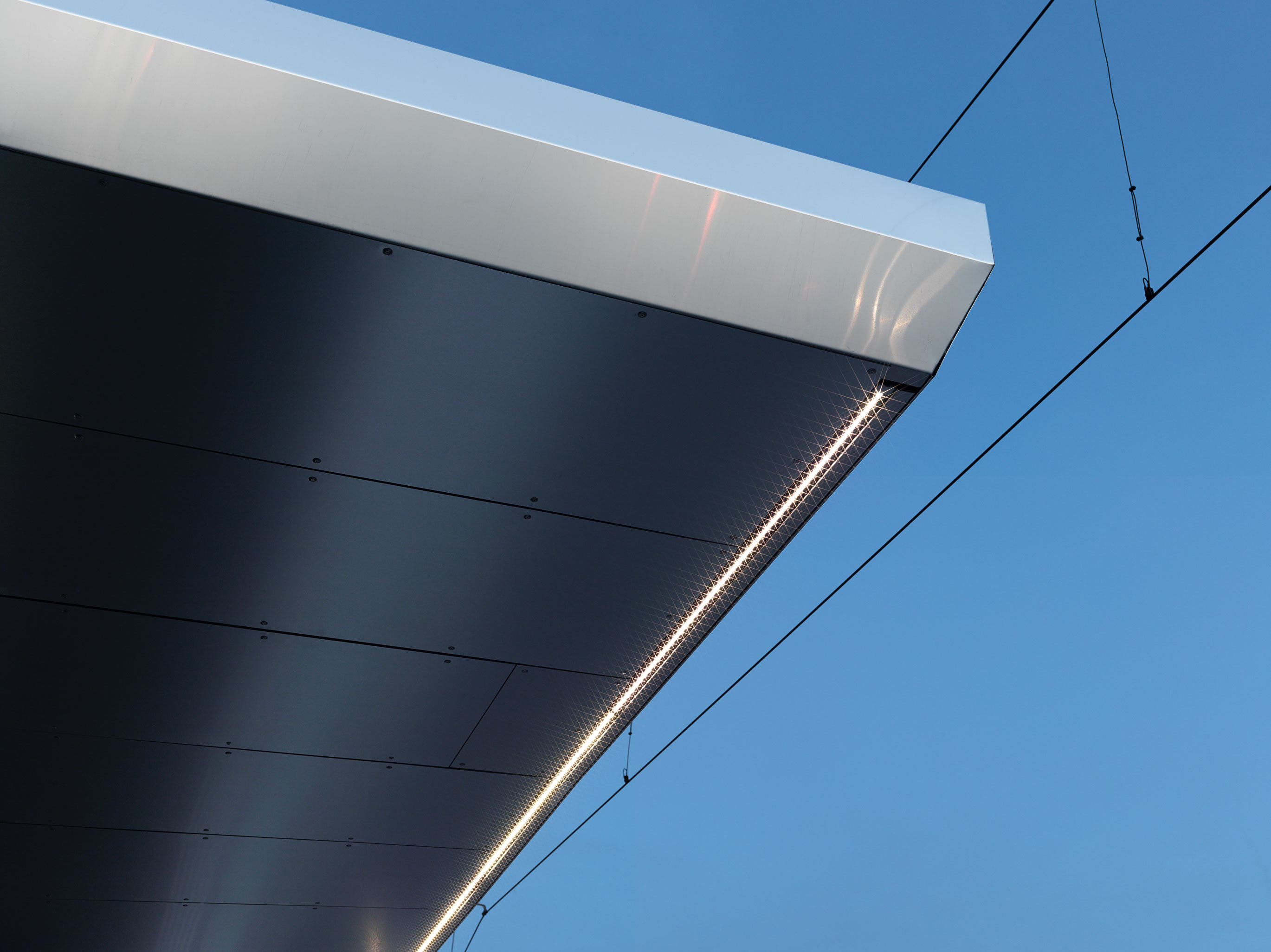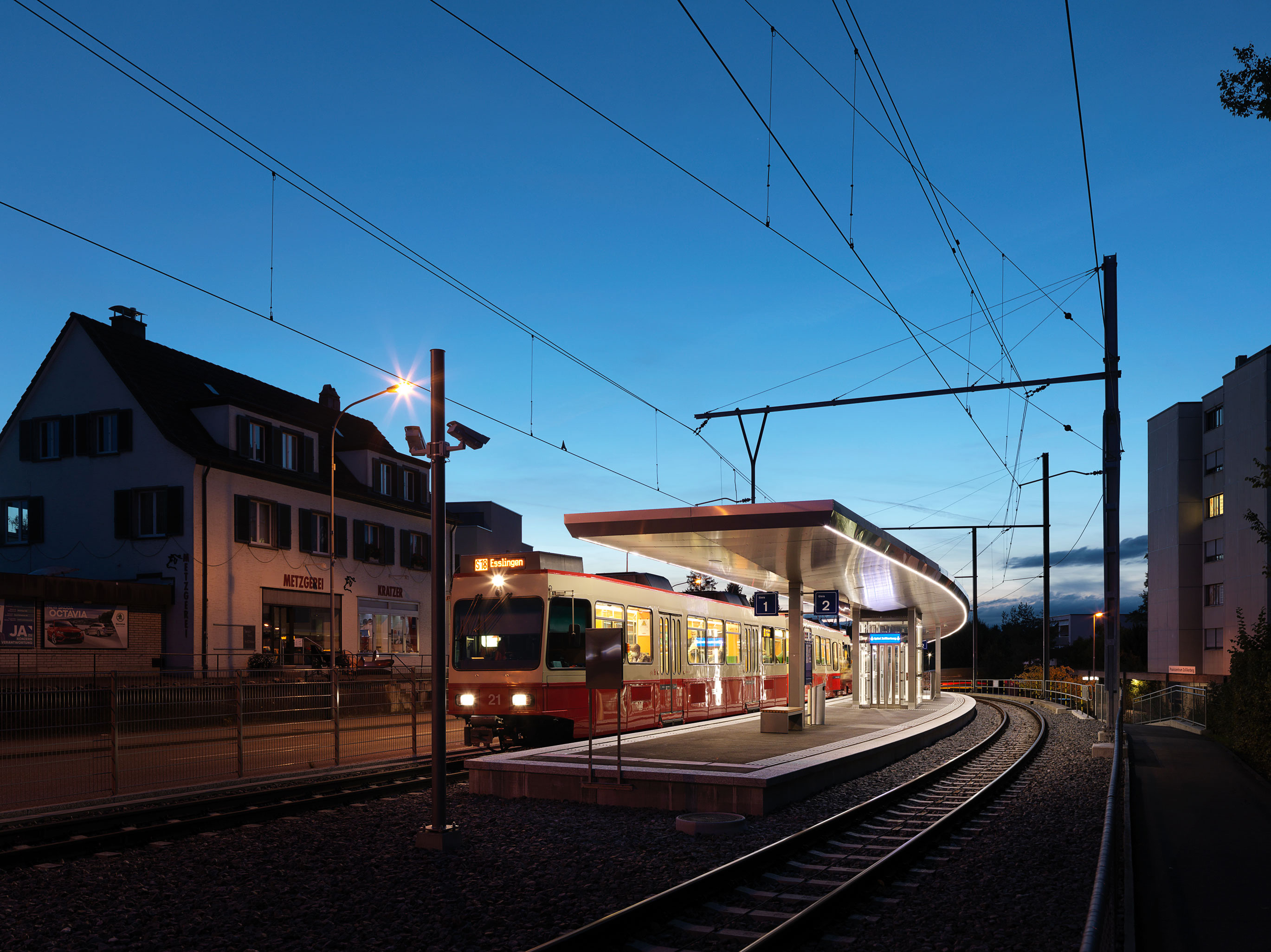 Forchbahn, Haltestelle Spital Zollikerberg Projekt eines 70 m langen geschwungenen Perrondachs Auftragsart: öffentliche Ausschreibung Projekt/Ausführung: 2017 - 2018 Bilder: Pierre Kellenberger